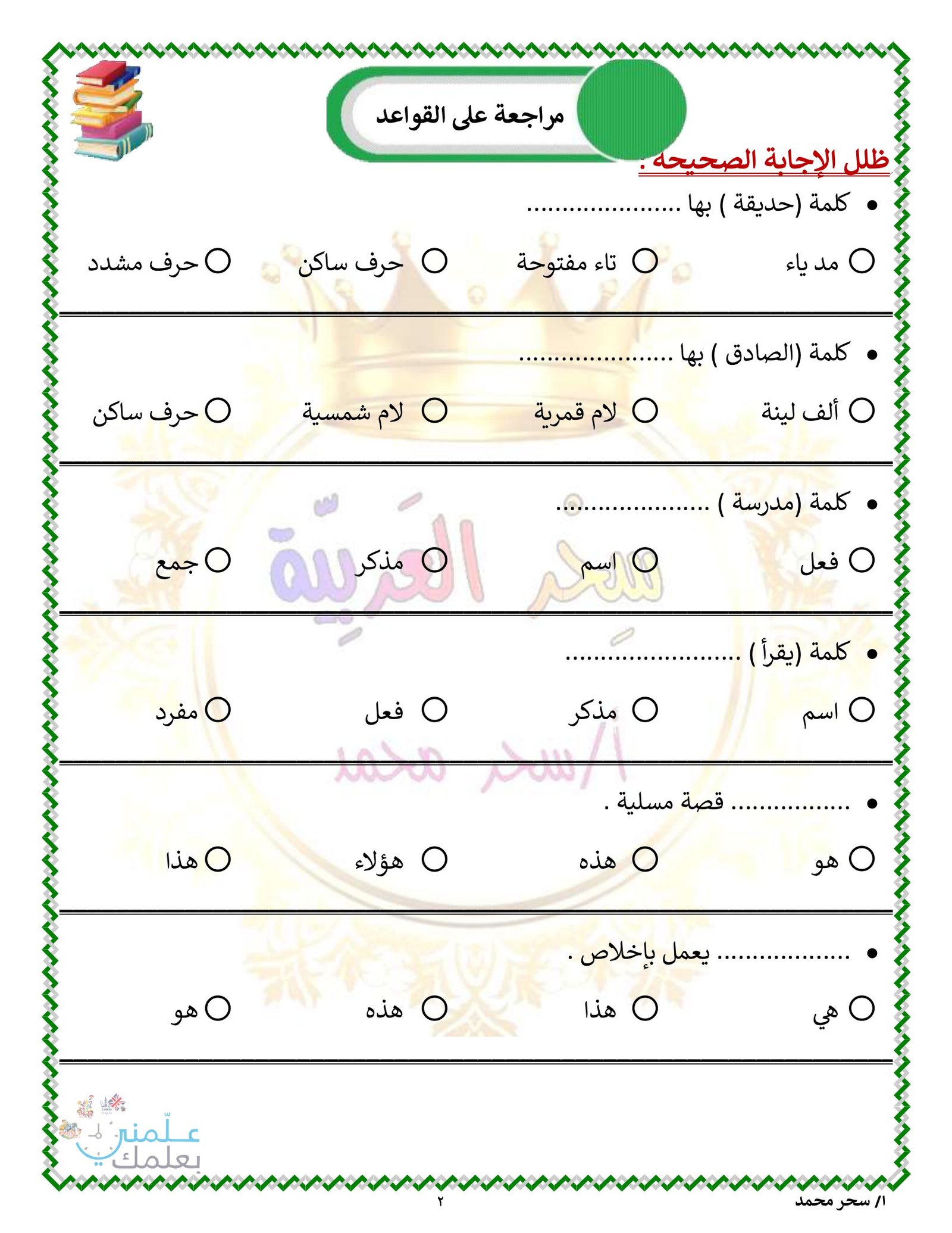 بوكليت اللغة العربية للصف الثاني الابتدائي الفصل الدراسي الأول pdf تحميل مجاني للاستاذه سحر محمد.