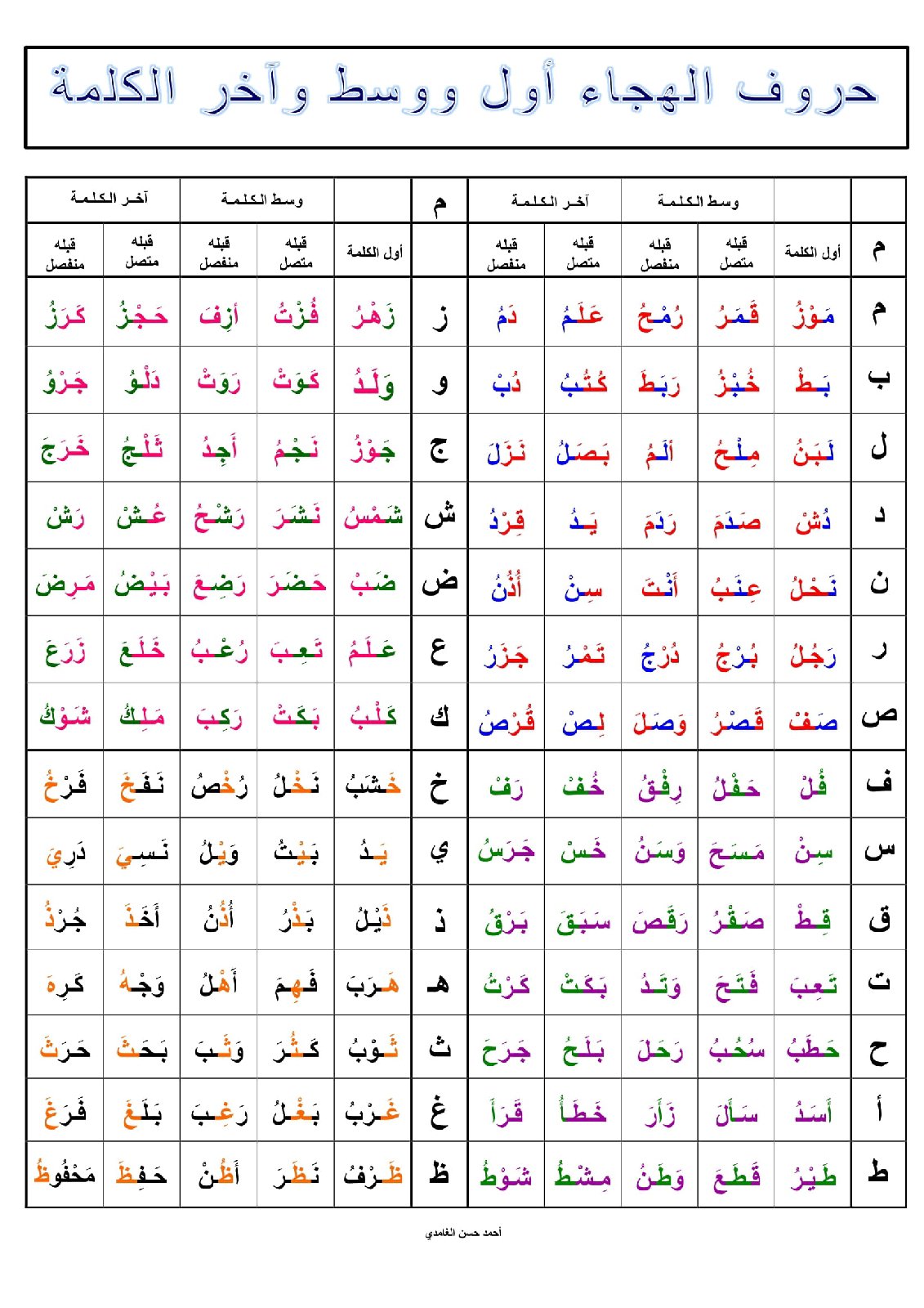 ملزمة الحروف الهجائية ومواضعها بالصور pdf تحميل مجاني مباشر