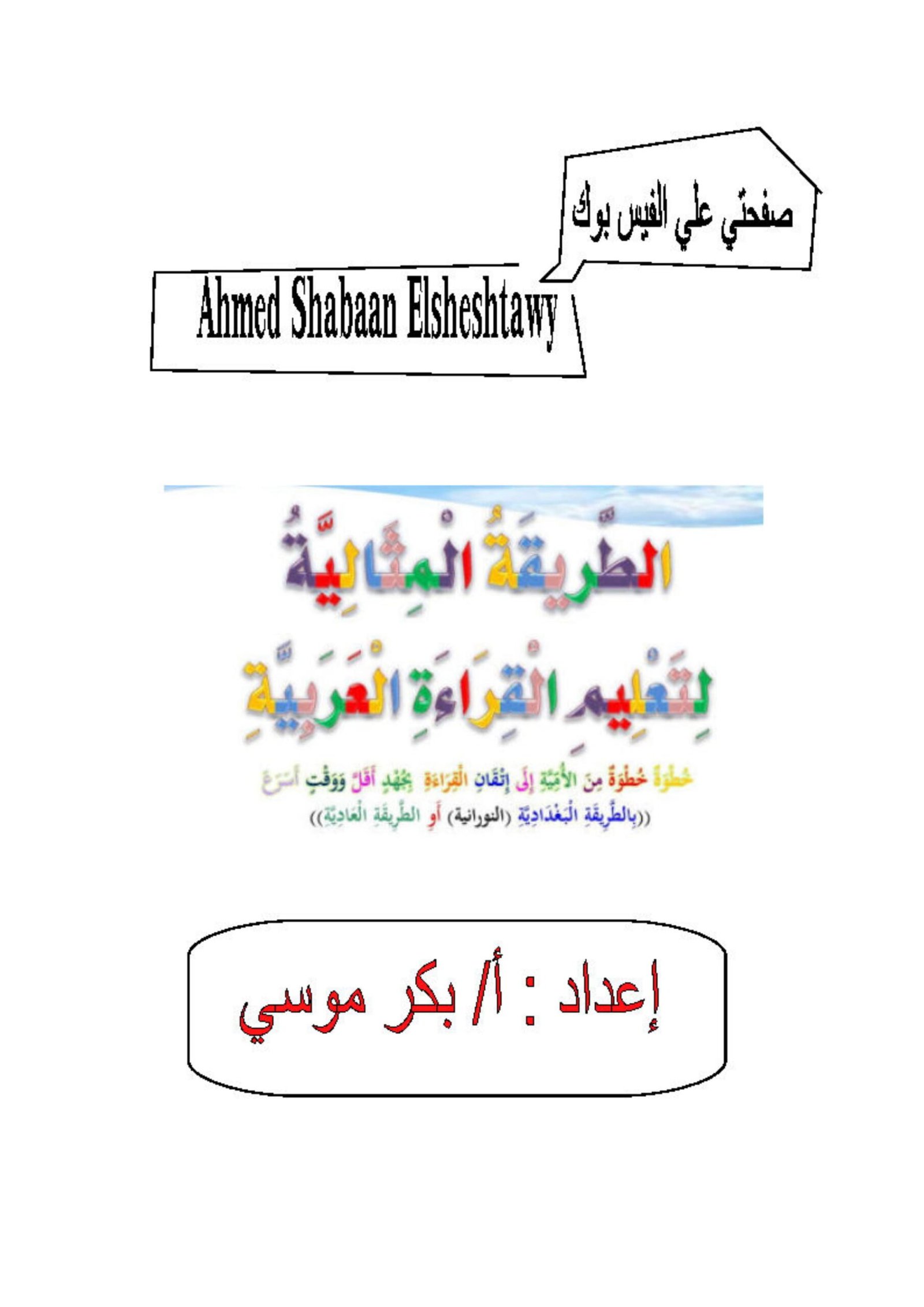 كتيب الطريقة المثالية لتعليم القراءة العربية pdf تحميل مجاني لتعلم القراءة خطوة بخطوة في وقت أسرع ومجهود أقل بالطريقة البغدادية النورانية أو الطريقة العادية إعداد الأستاذ: بكر موسى.