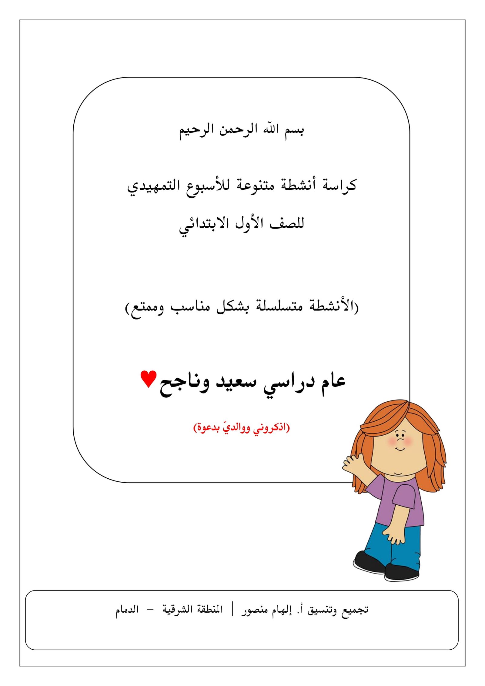 الصف الأول الابتدائي: كراسة أنشطة متنوعة للأسبوع التمهيدي pdf لتمارين ما قبل تعلم الكتابة إعداد الأستاذة: إلهام منصور.