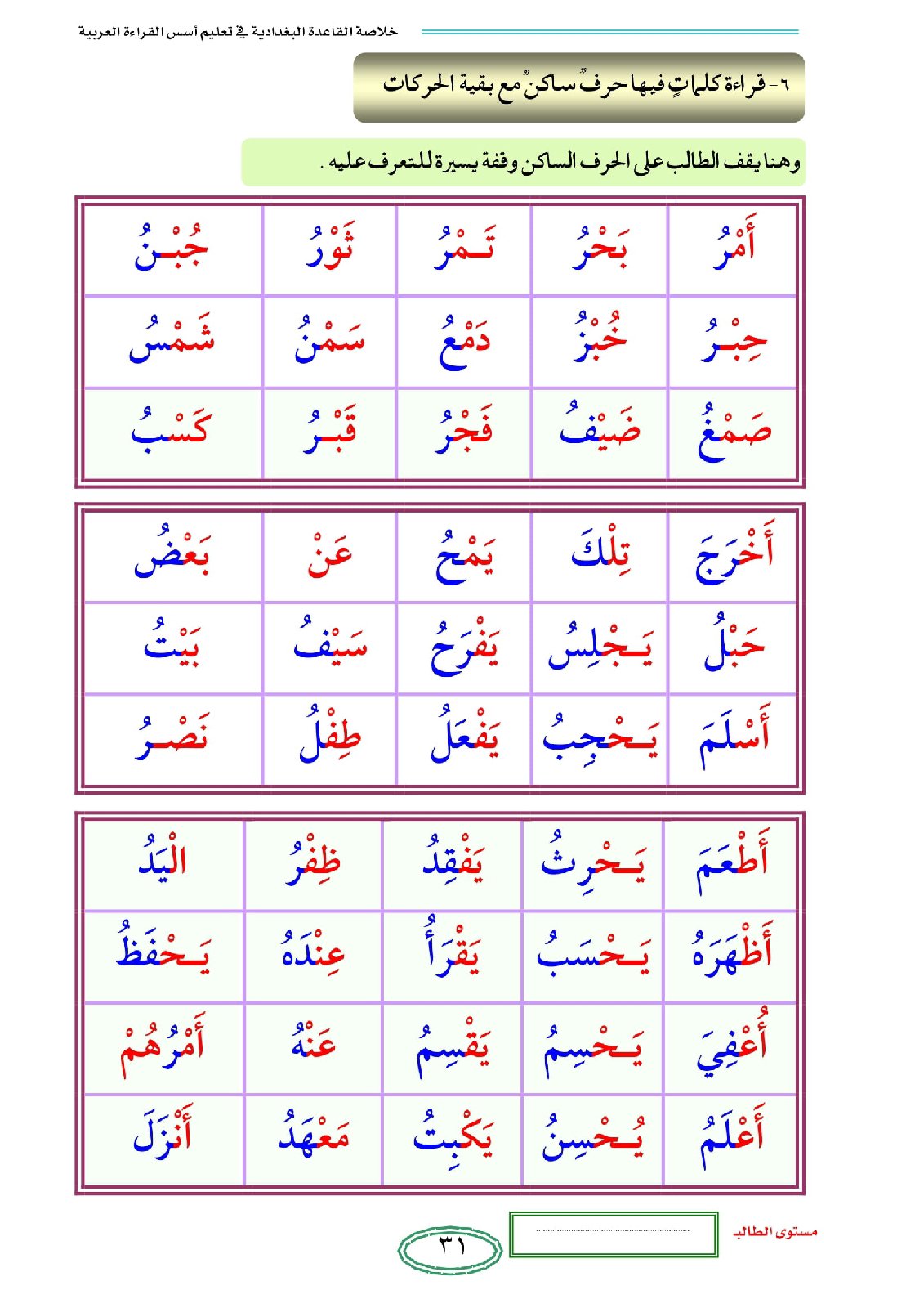 تحميل مذكرة خلاصة القاعدة البغدادية في تعليم أسس اللغة العربية