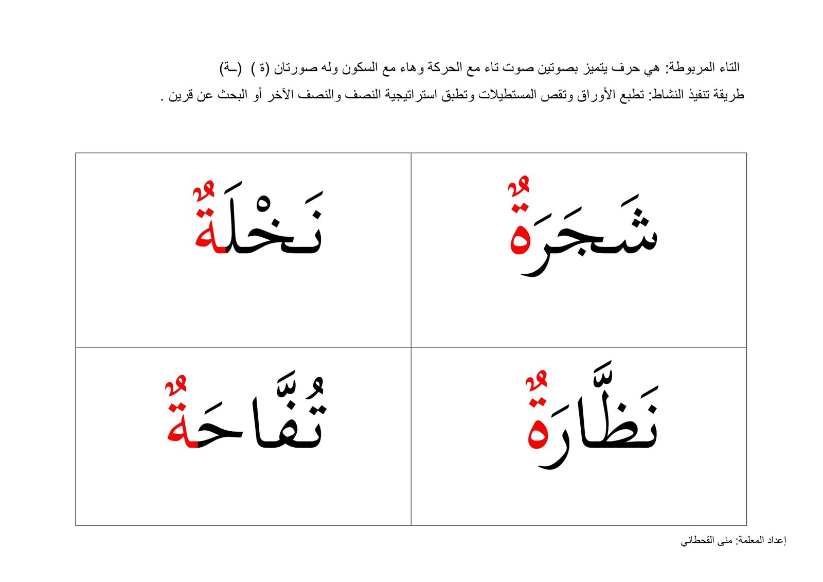 صور من ملزمة مهارة التاء المربوطة والتاء المفتوحة