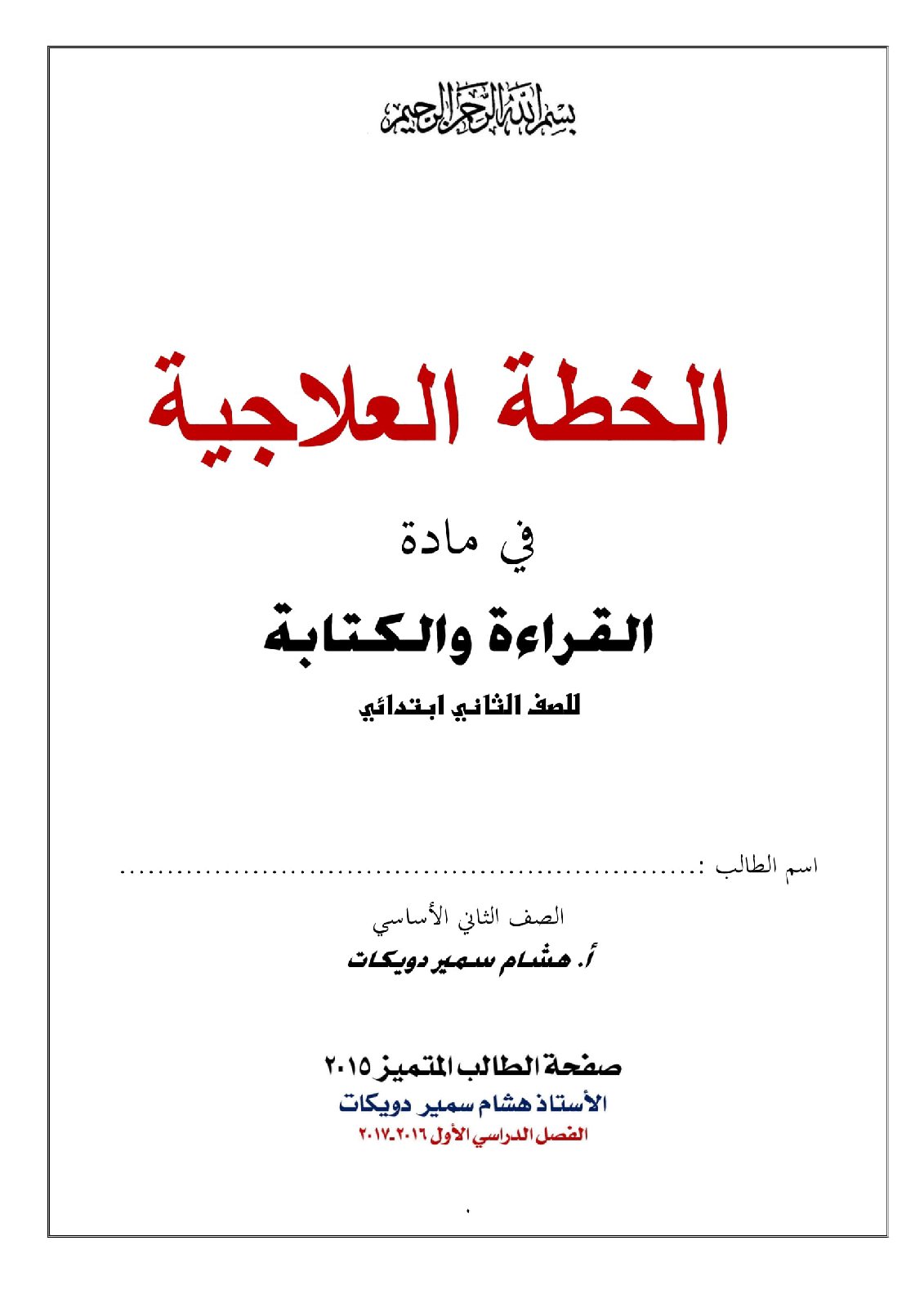 تحميل مذكرة الخطة العلاجية في القراءة والكتابة للصف الثاني الإبتدائي