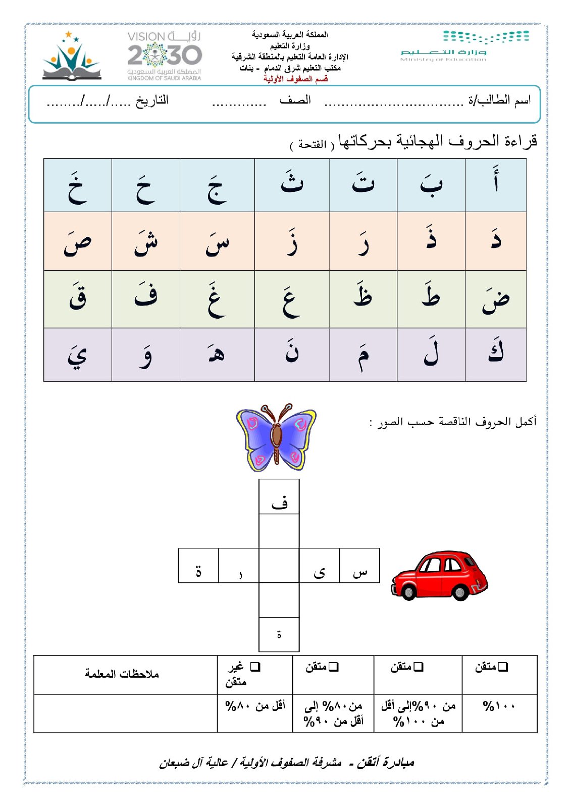 ملزمة الحروف الهجائية لمعرفة الحروف وتعلم كتابتها pdf تحميل مجاني
