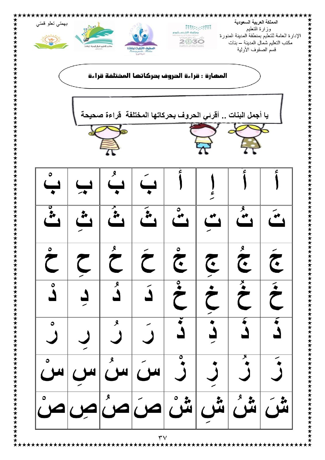 ملزمة الحروف الهجائية لمعرفة الحروف وتعلم كتابتها pdf تحميل مجاني