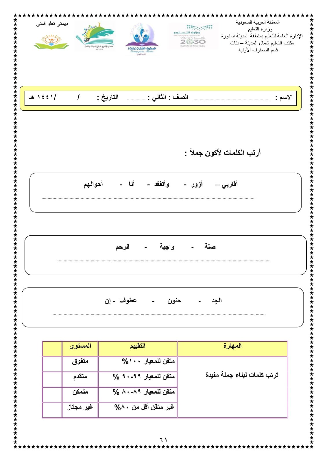 أوراق عمل مراجعة لتعزيز مهارات القراءة والكتابة في المرحلة الابتدائية pdf تحميل مباشر مجاني