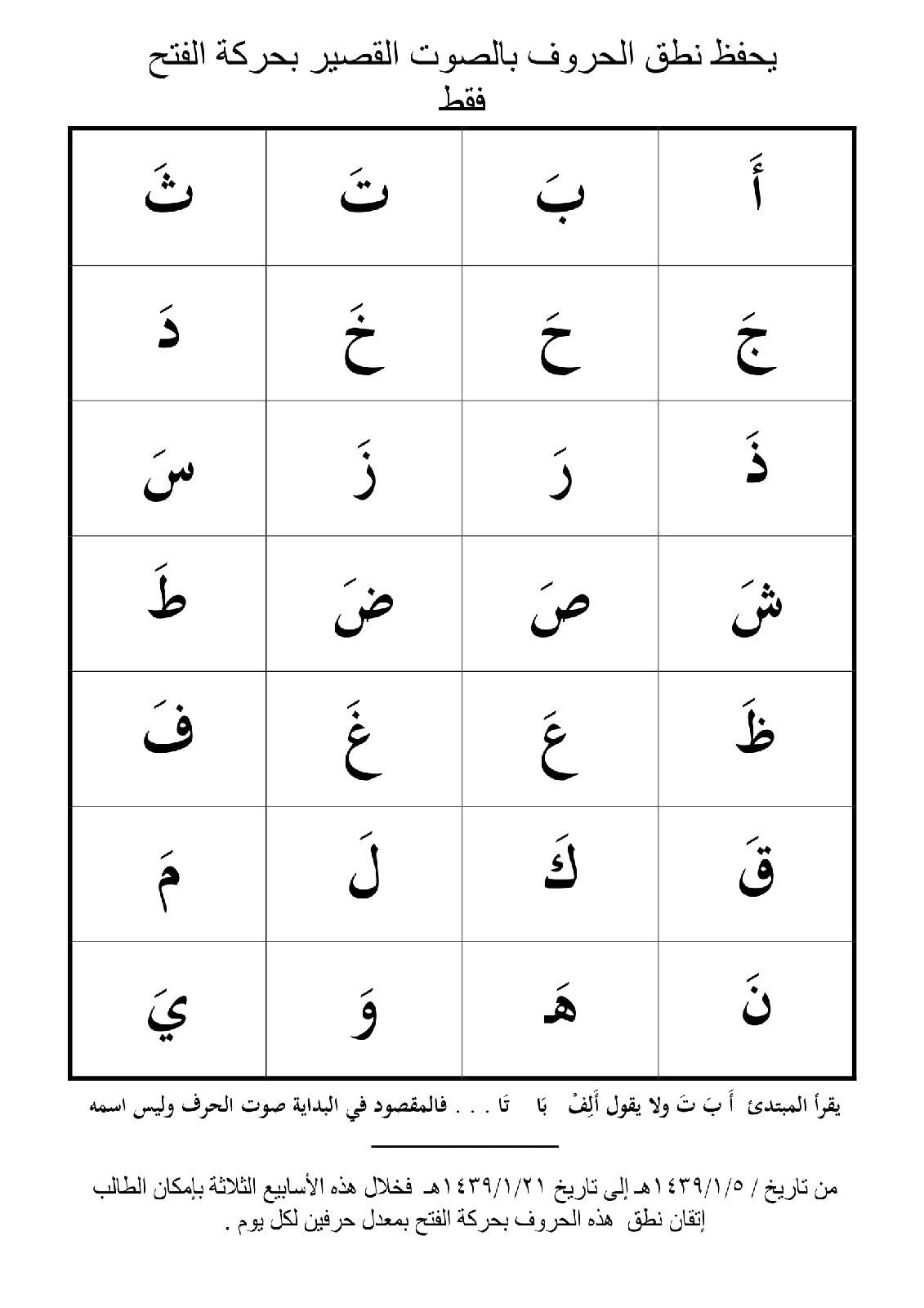 تحميل مذكرة قراءة الحروف بحركة الفتح