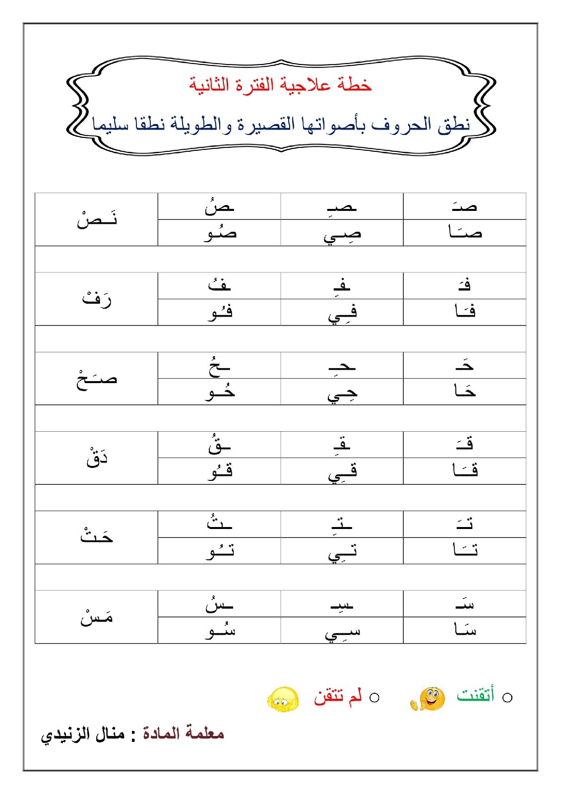 صور مذكرة نطق الحروف بأصواتها القصيرة والطويلة
