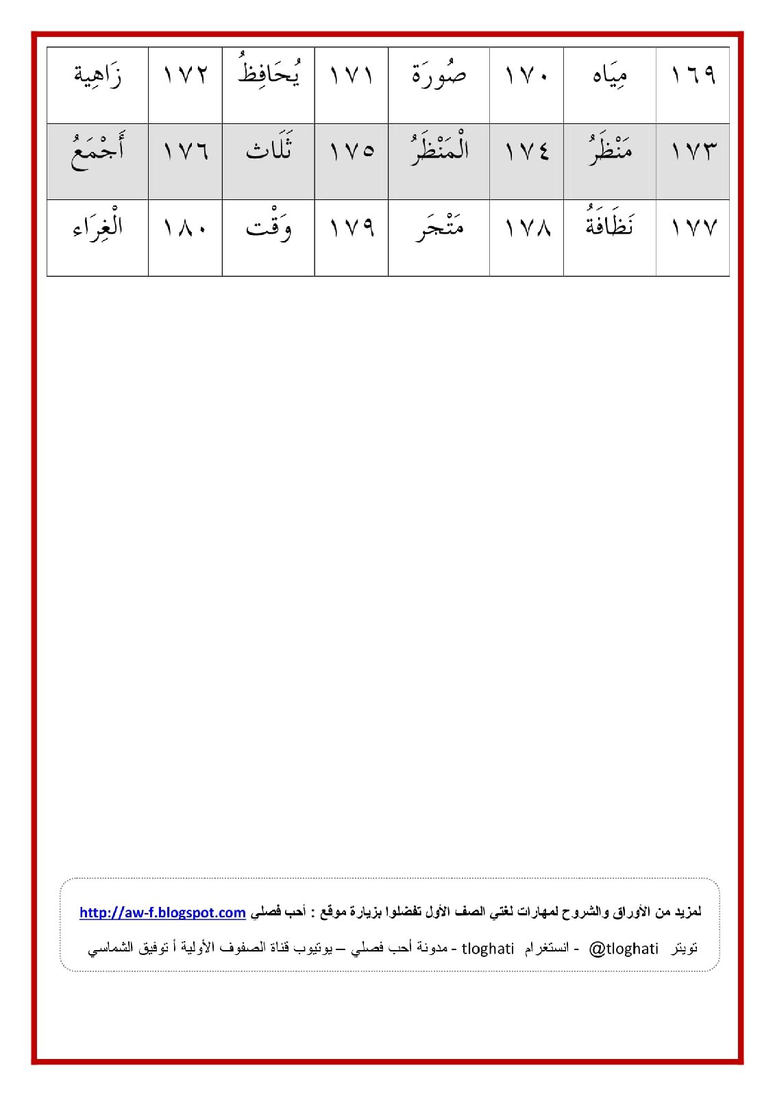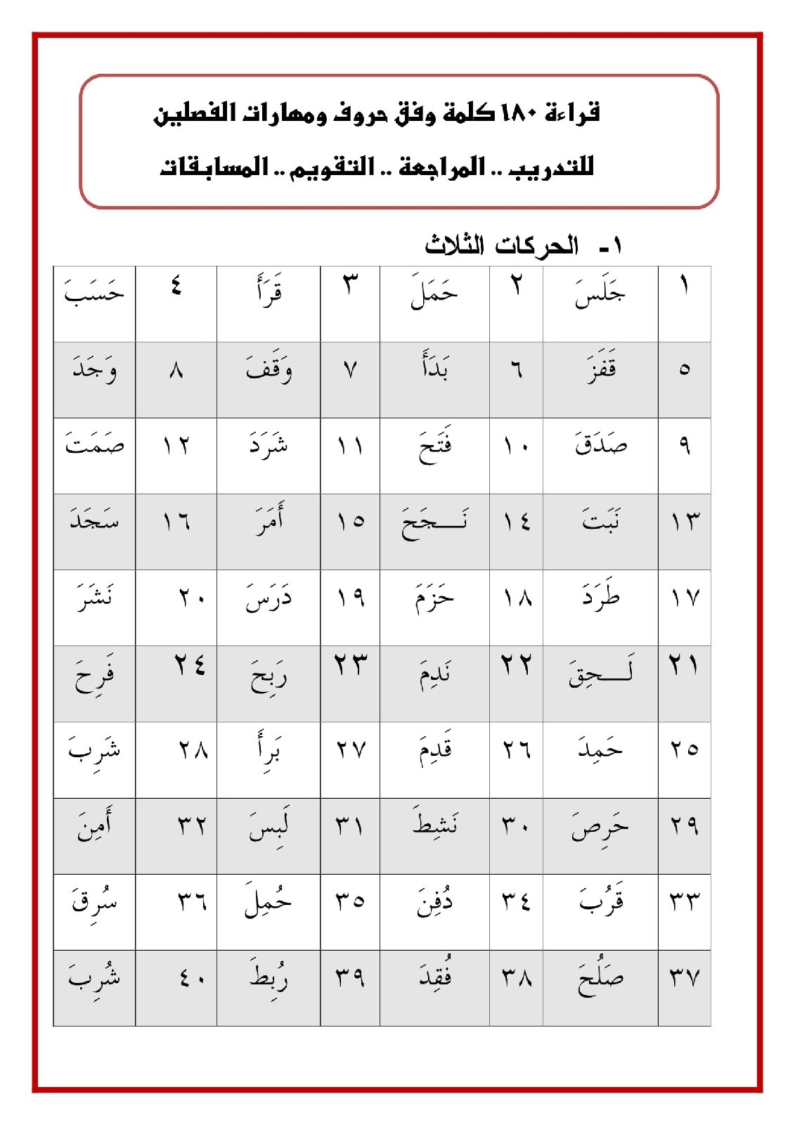 تحميل مذكرة قراءة 180 كلمة وفق حروف ومهارات الفصلين