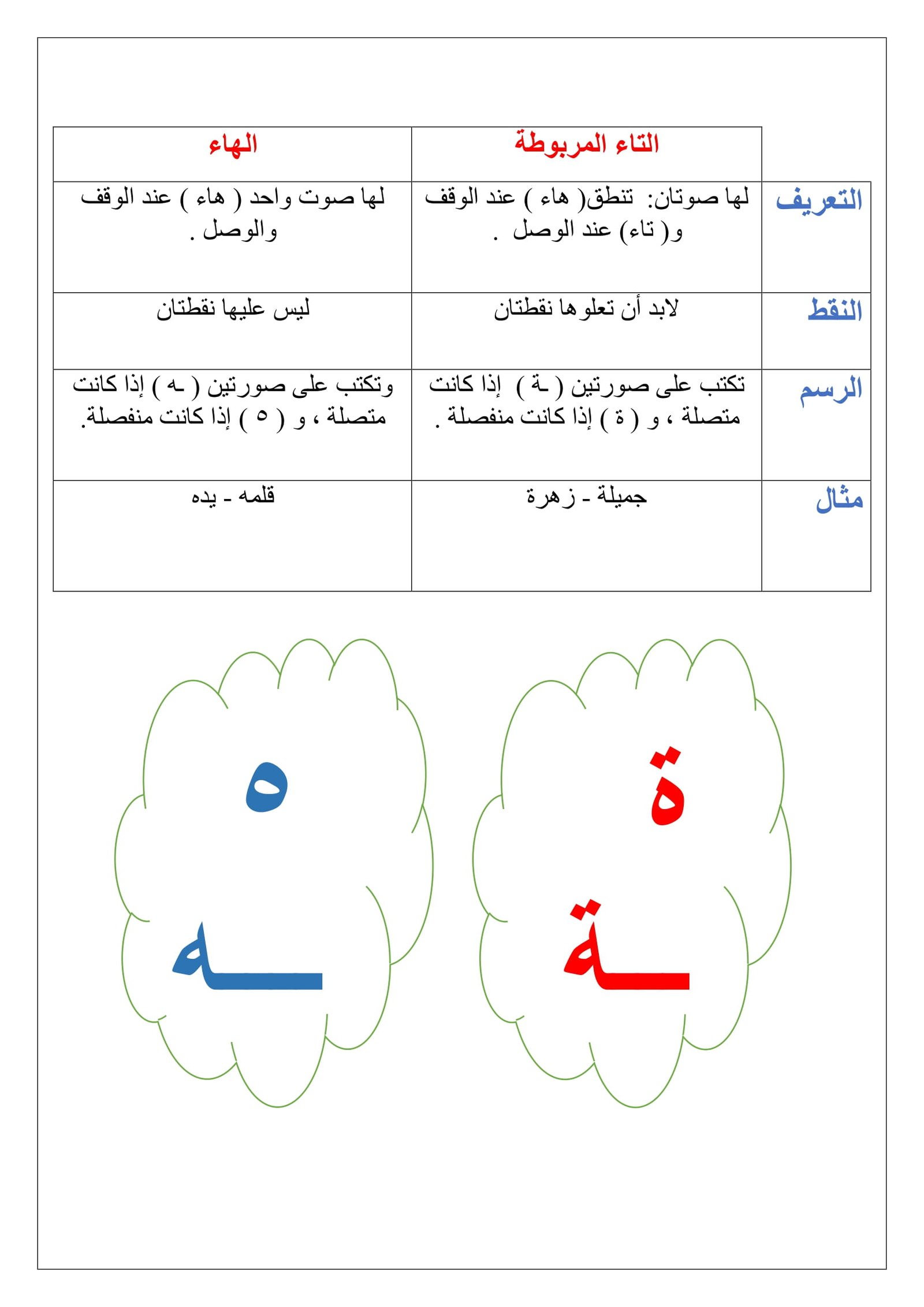 مهارة التاء المربوطة والتاء المفتوحة للاطفال: أسرار النجاح وتحميل الأوراق