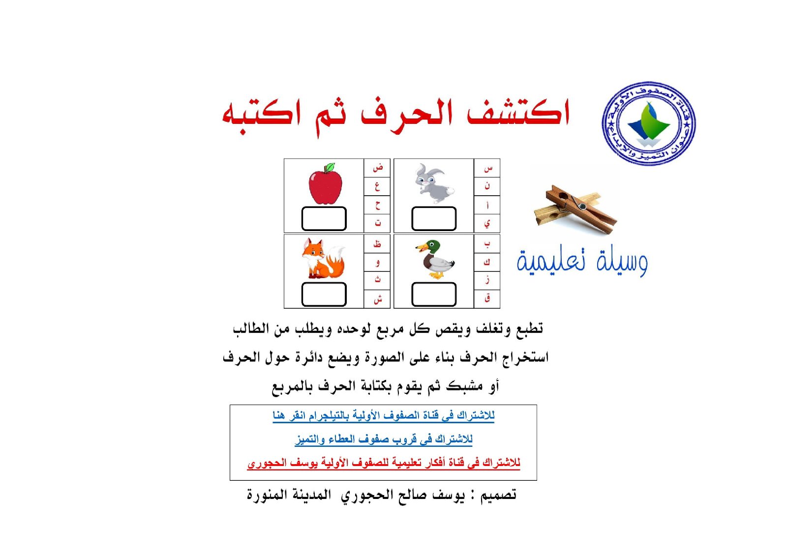 صور مذكرة اكتشف الحرف ثم اكتبه