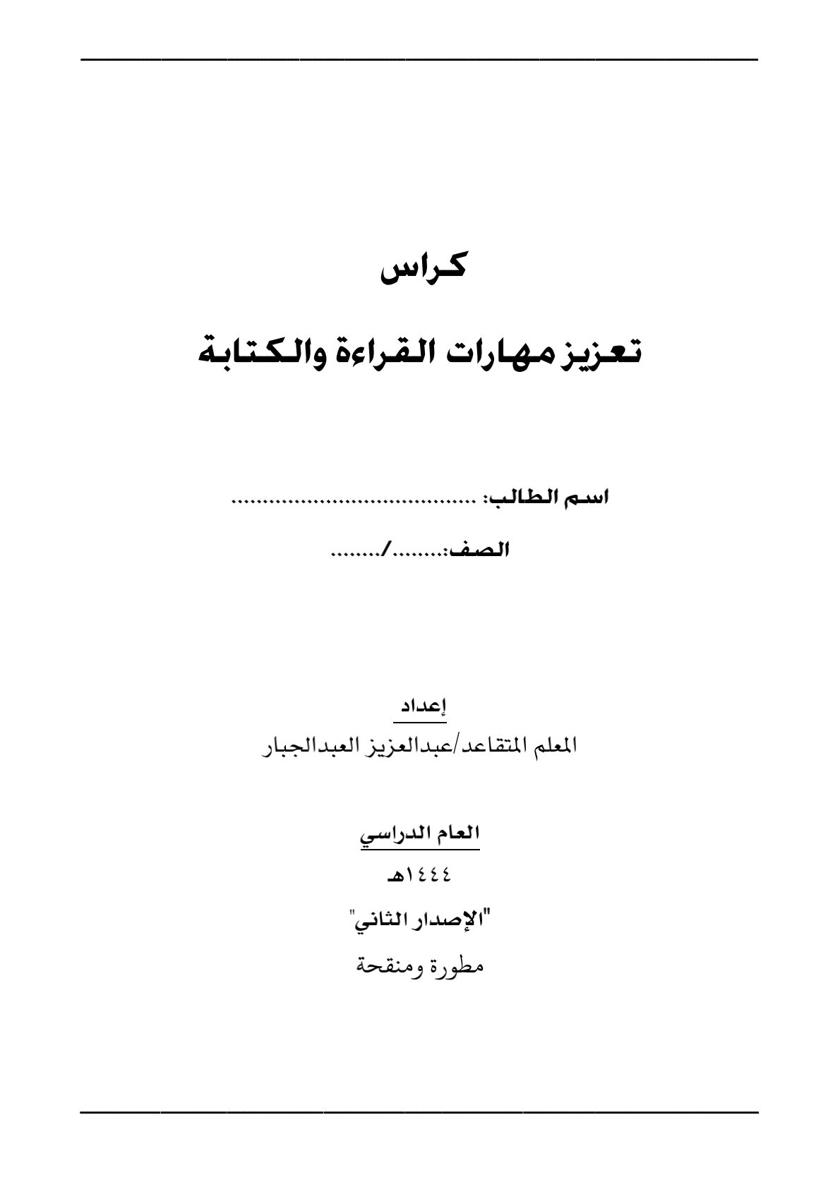 كراسة مهارات متقدمة اللغة العربية لتعزيز مهارات القراءة والكتابة بتمارين كتابة ومساحة لإعادة نسخ الجمل إعداد المعلم: عبد العزيز عبد الجبار.