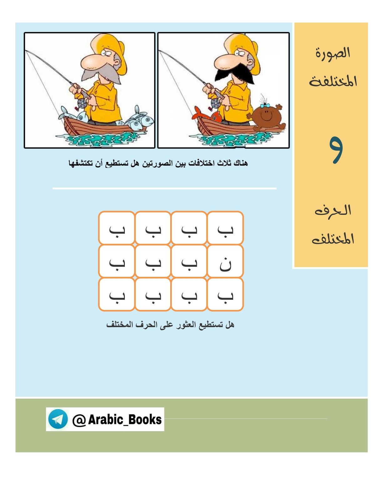 عينك على الحرف: تدريبات تركيز لتعلم أبجديتك نشاط جد الاختلافات بكل صورة لزيادة تركيز الأطفال اثناء التعلم.