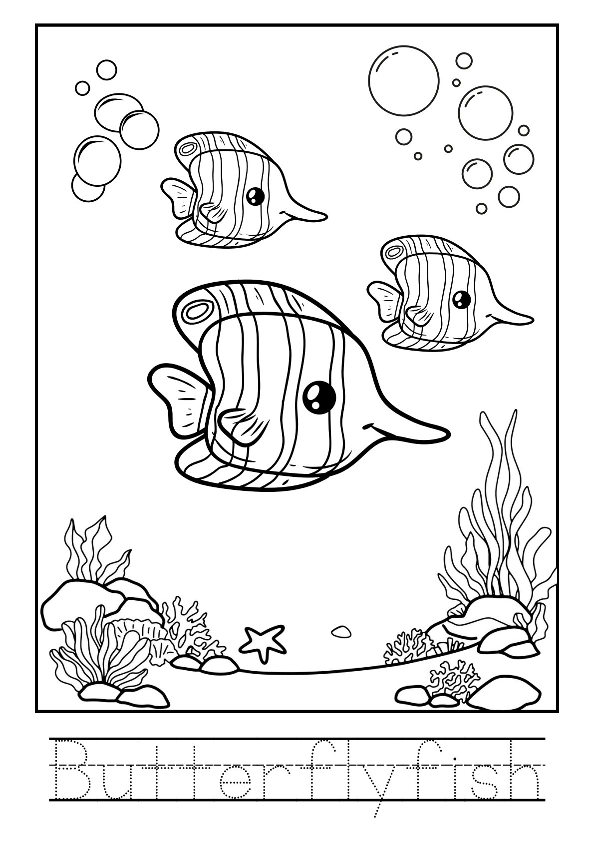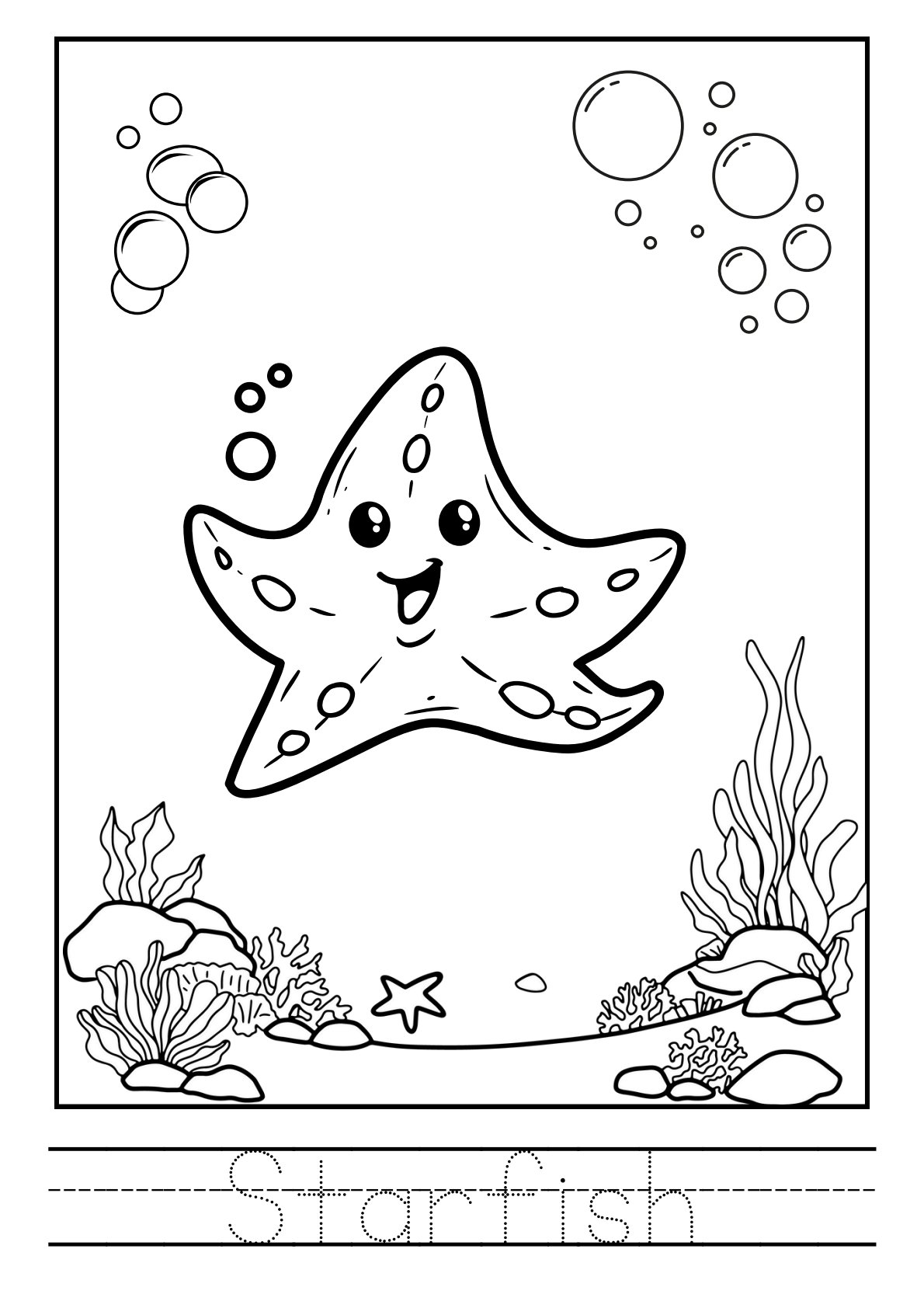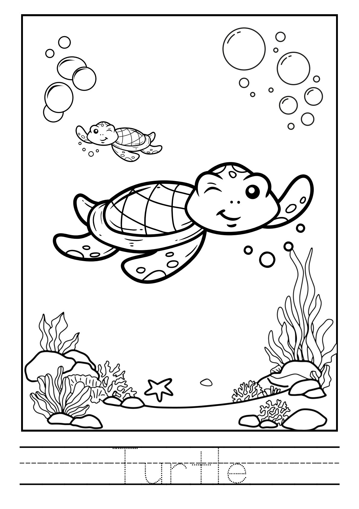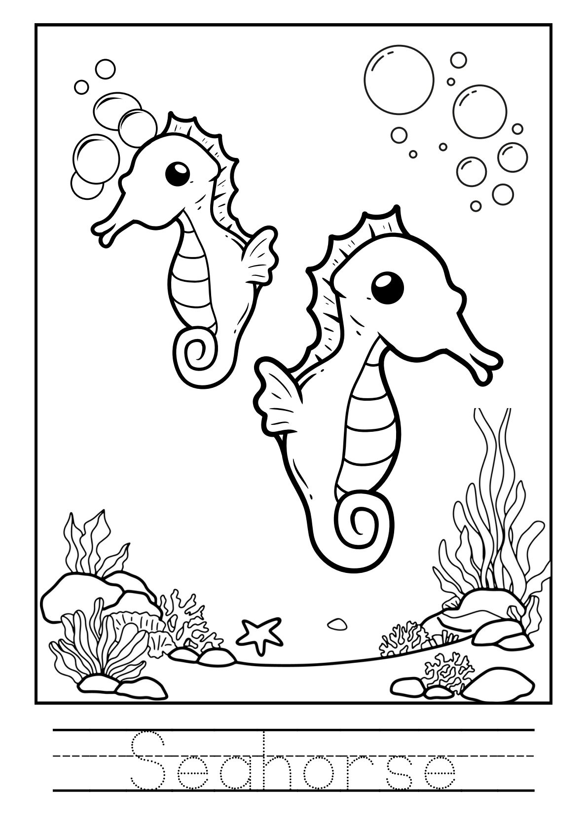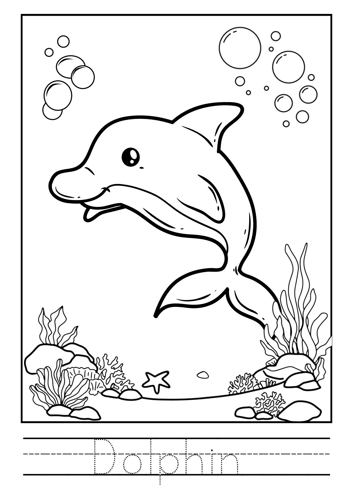 تلوين حيوانات البحر بالأنجليزية PDF للأطفال