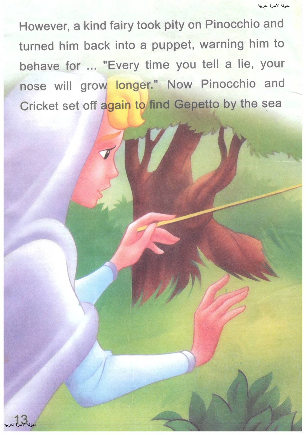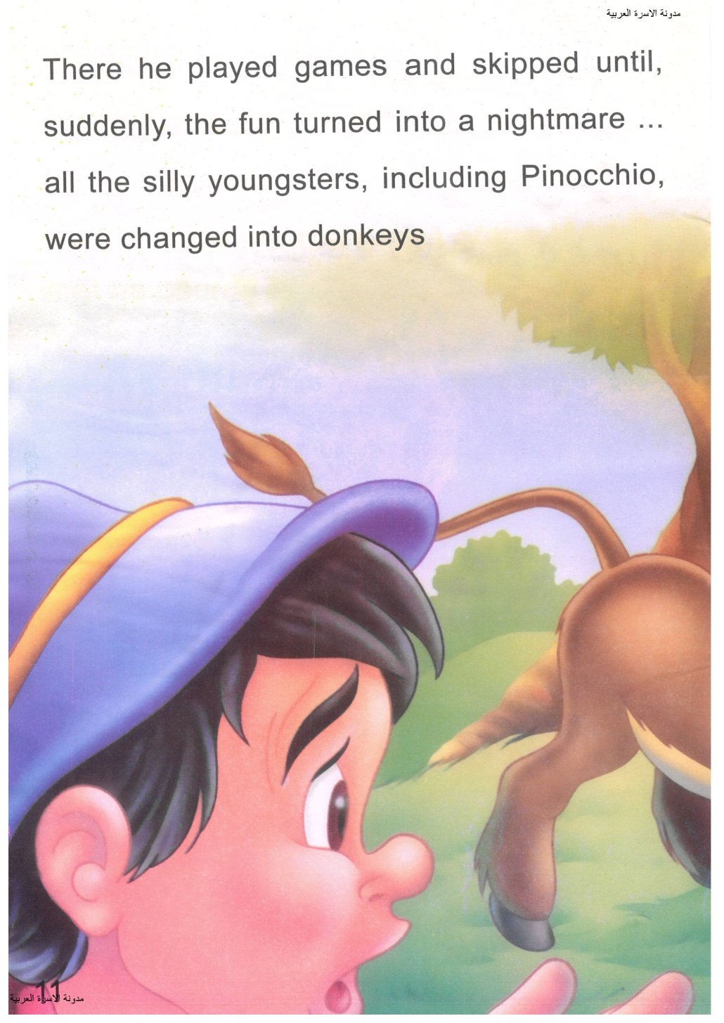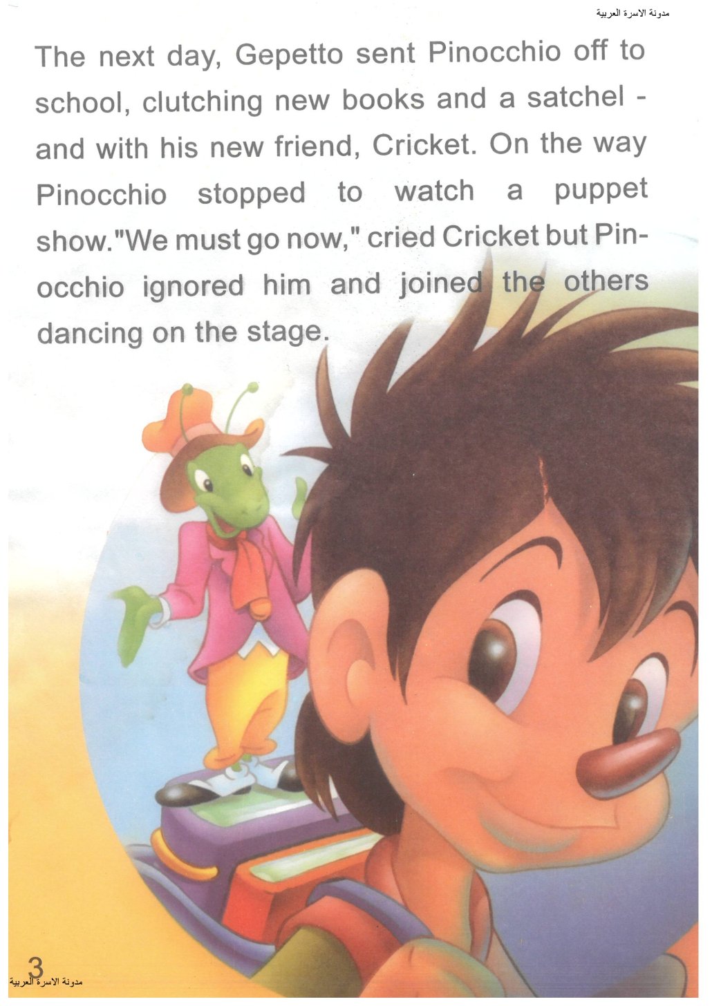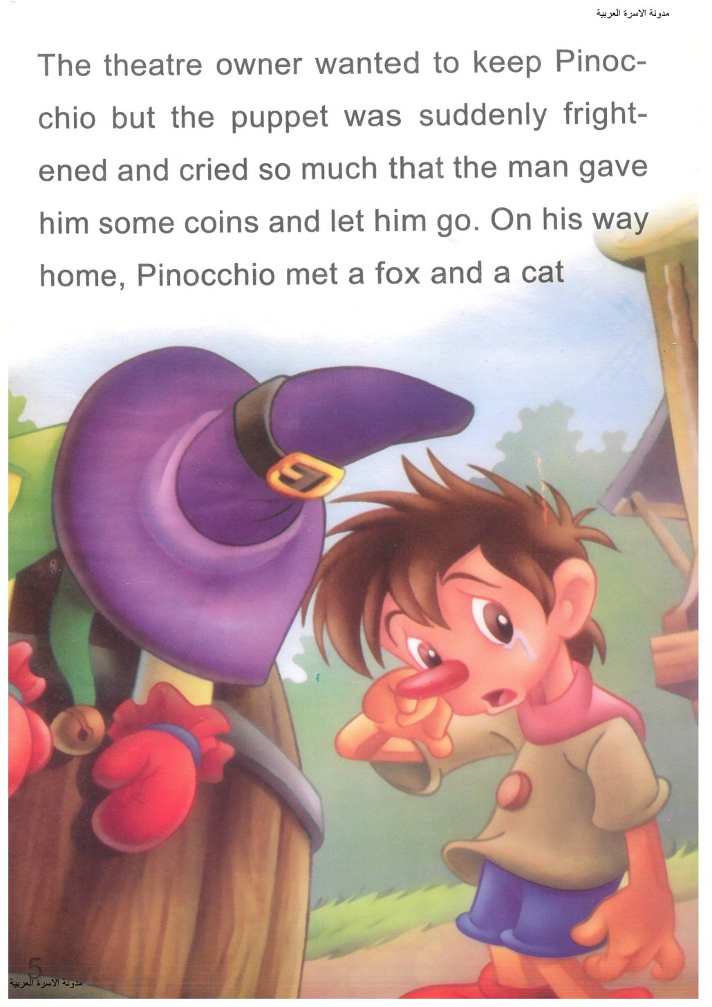 صور من قصة بينوكيو مترجمة (عربي – إنجليزي) لتعليم الأطفال