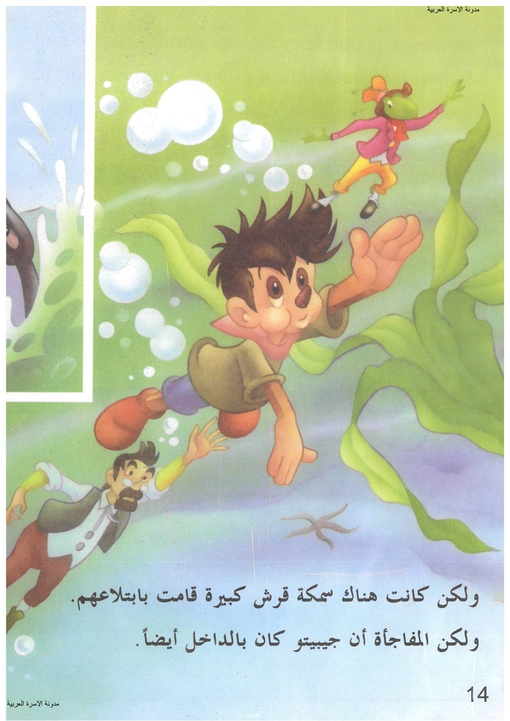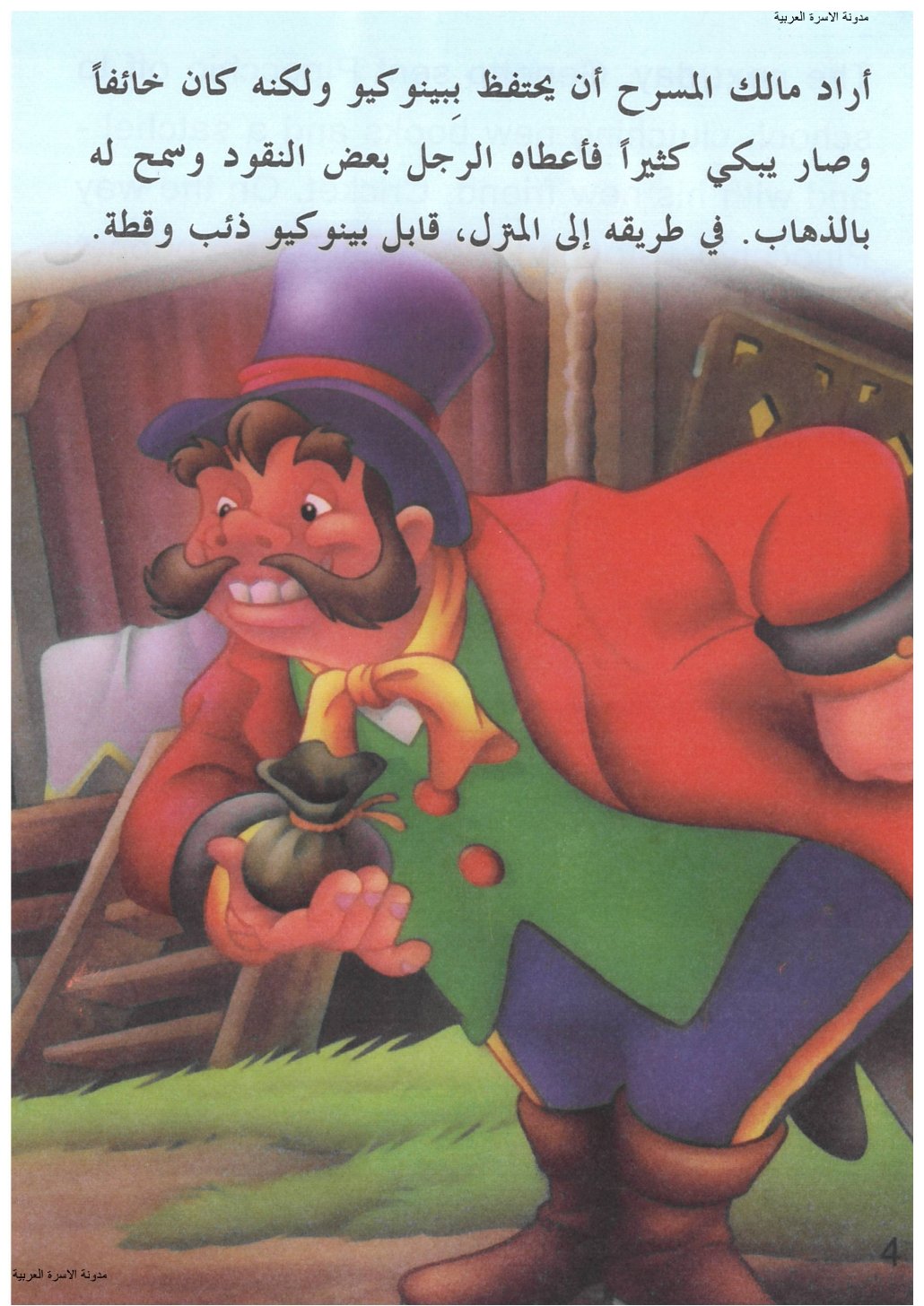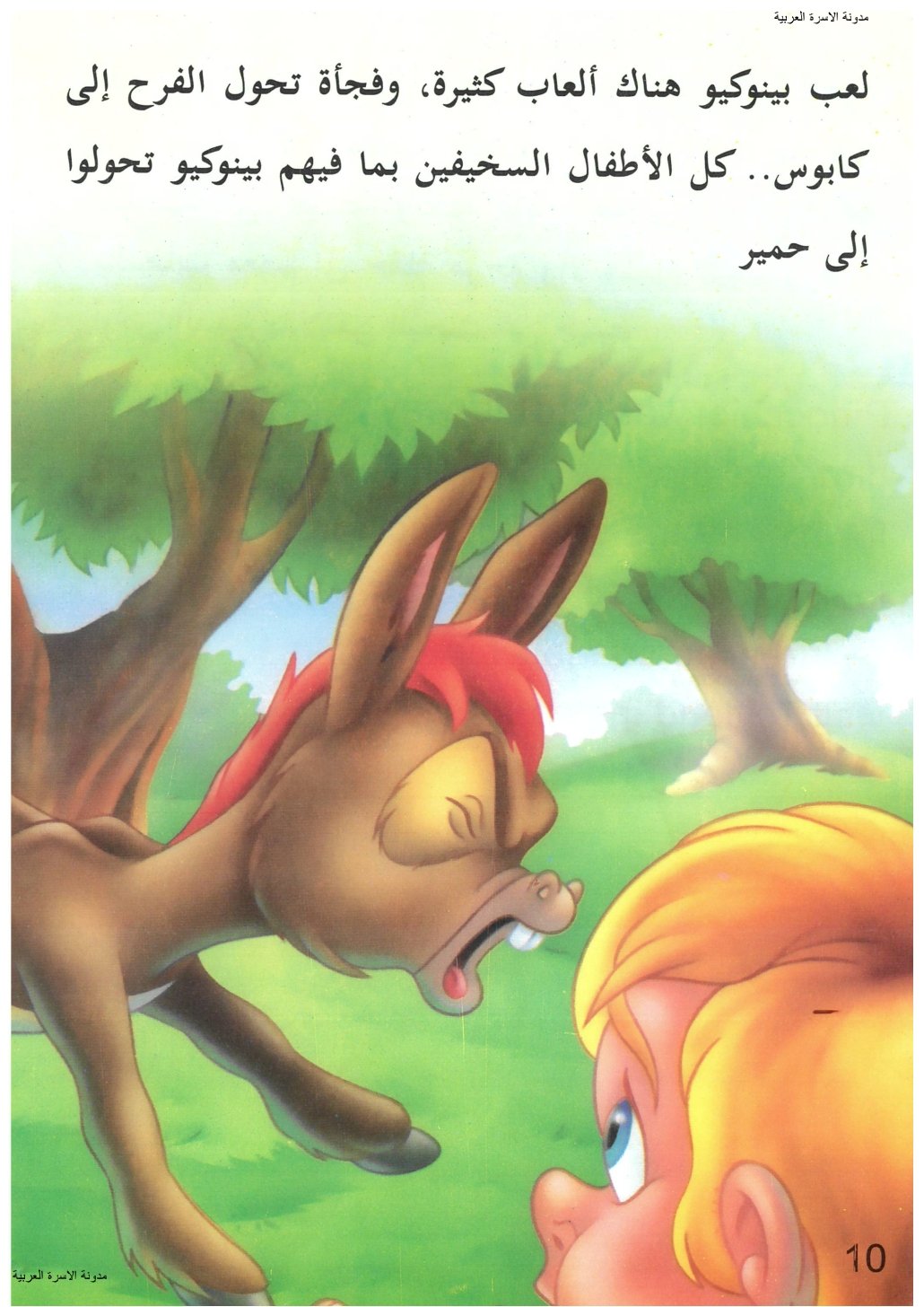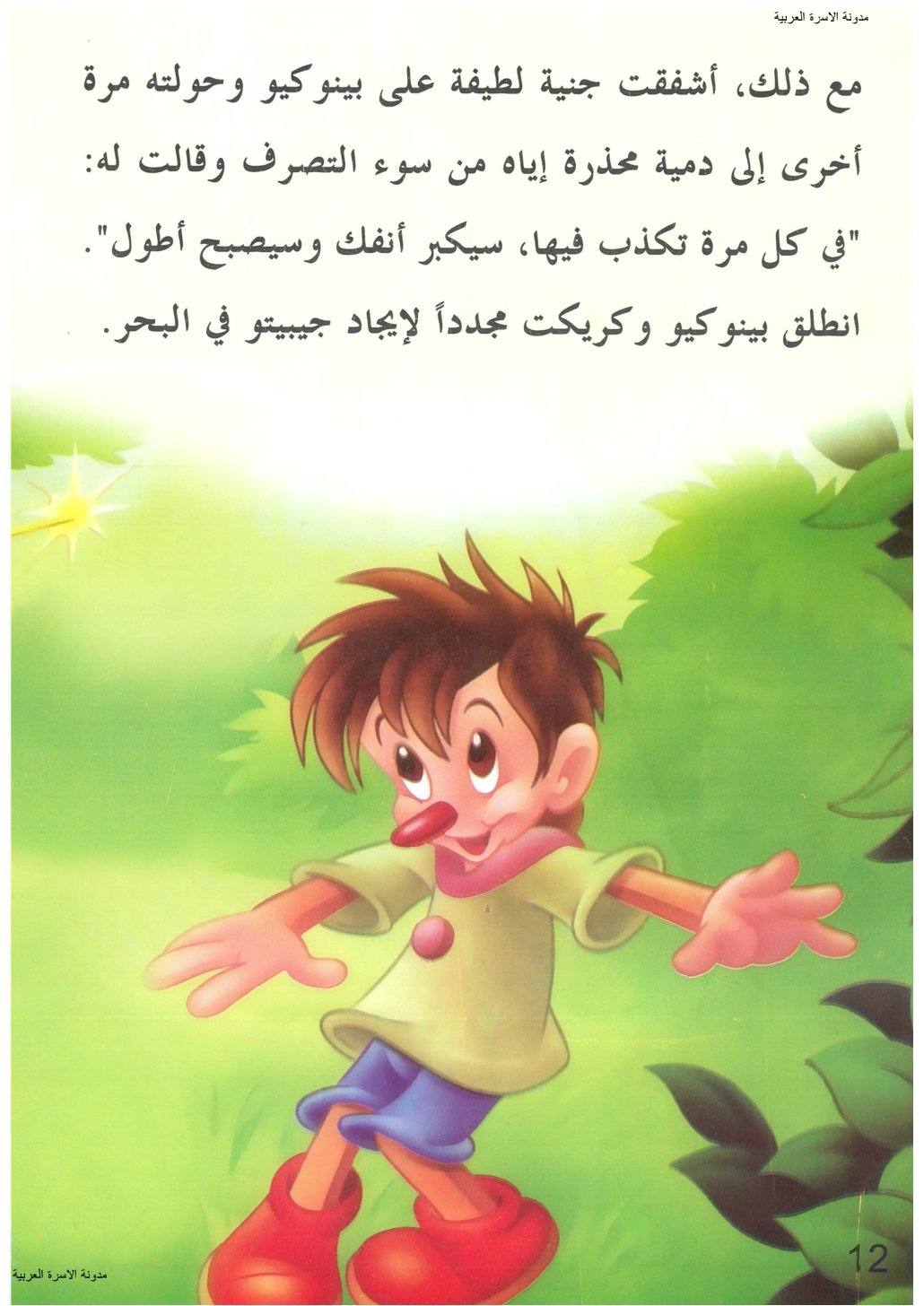 صور من قصة بينوكيو مترجمة (عربي – إنجليزي) لتعليم الأطفال