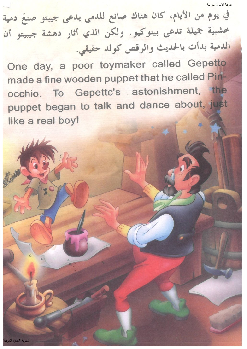 قصة بينوكيو مترجمة (عربي - إنجليزي) لتعليم الأطفال