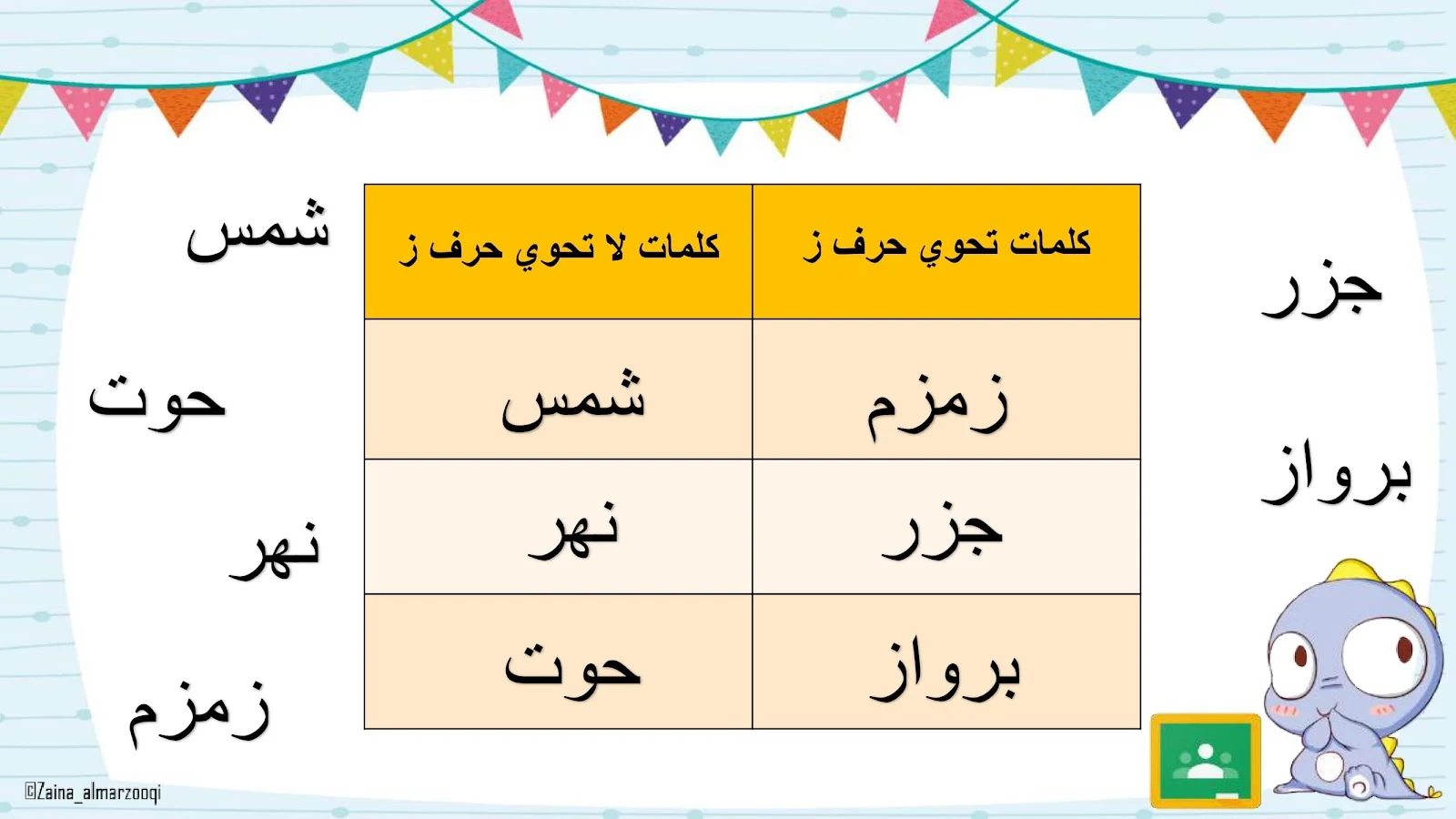 حرف الزاي اوراق عمل وتدريبات وبوربوينت زينة المرزوقي