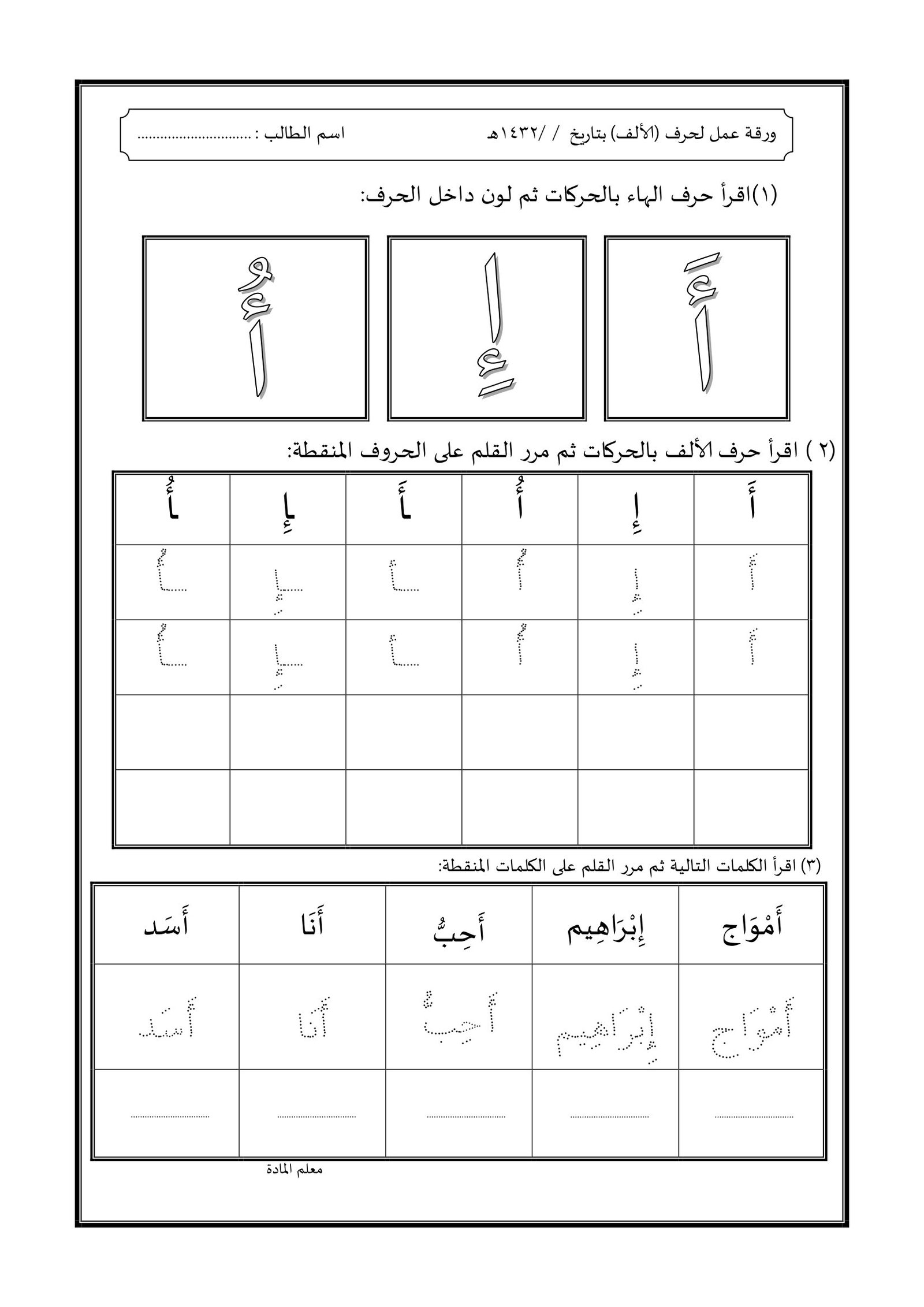 ملزمة تدريبات على الحروف العربية pdf مجاني