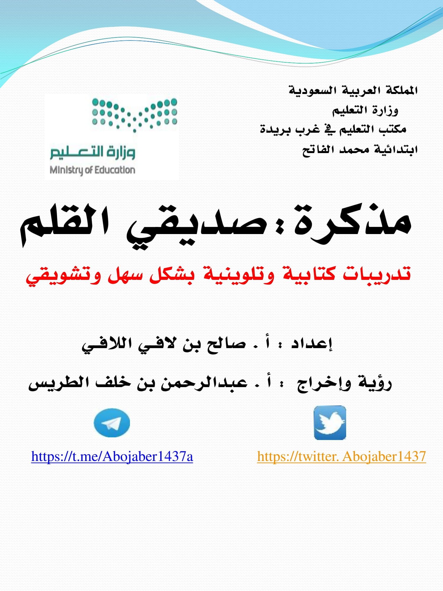 مذكرة: صديقي القلم pdf تحميل مباشر مجاني تدريبات كتابية وتلوينية بطريقة سهلة وتشويقية إعداد الأستاذ: صالح بن لافي اللافي. مميزات…