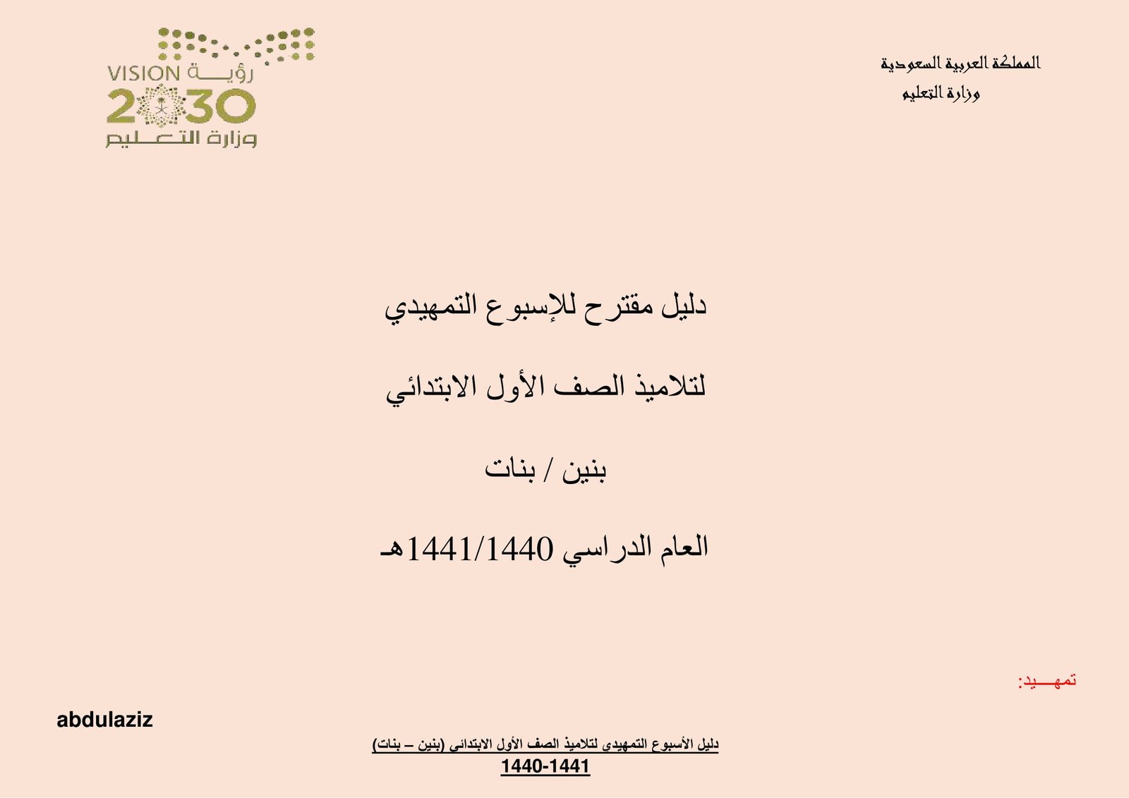 دليل مقترح للإسبوع التمهيدي لتلاميذ الصف الأول الابتدائي pdf