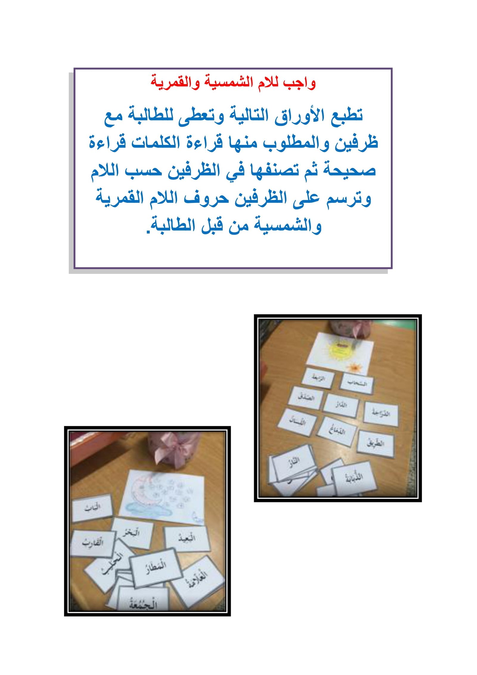 تدريبات على اللام الشمسية والقمرية: مذكرة تعليمية للأطفال