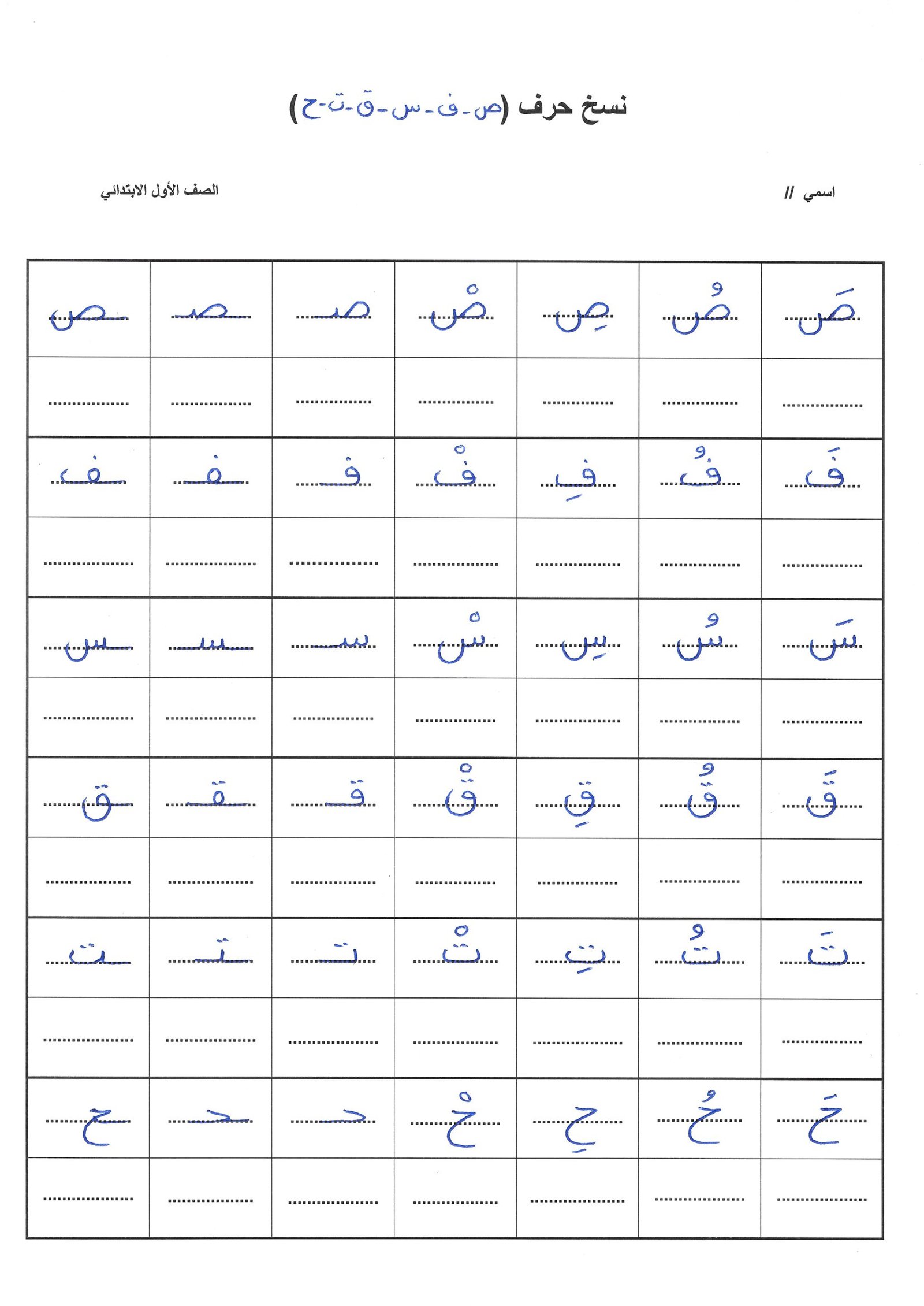 حروف المجموعة الثانية: نسخ حروف الوحدة الثانية للصف الأول pdf