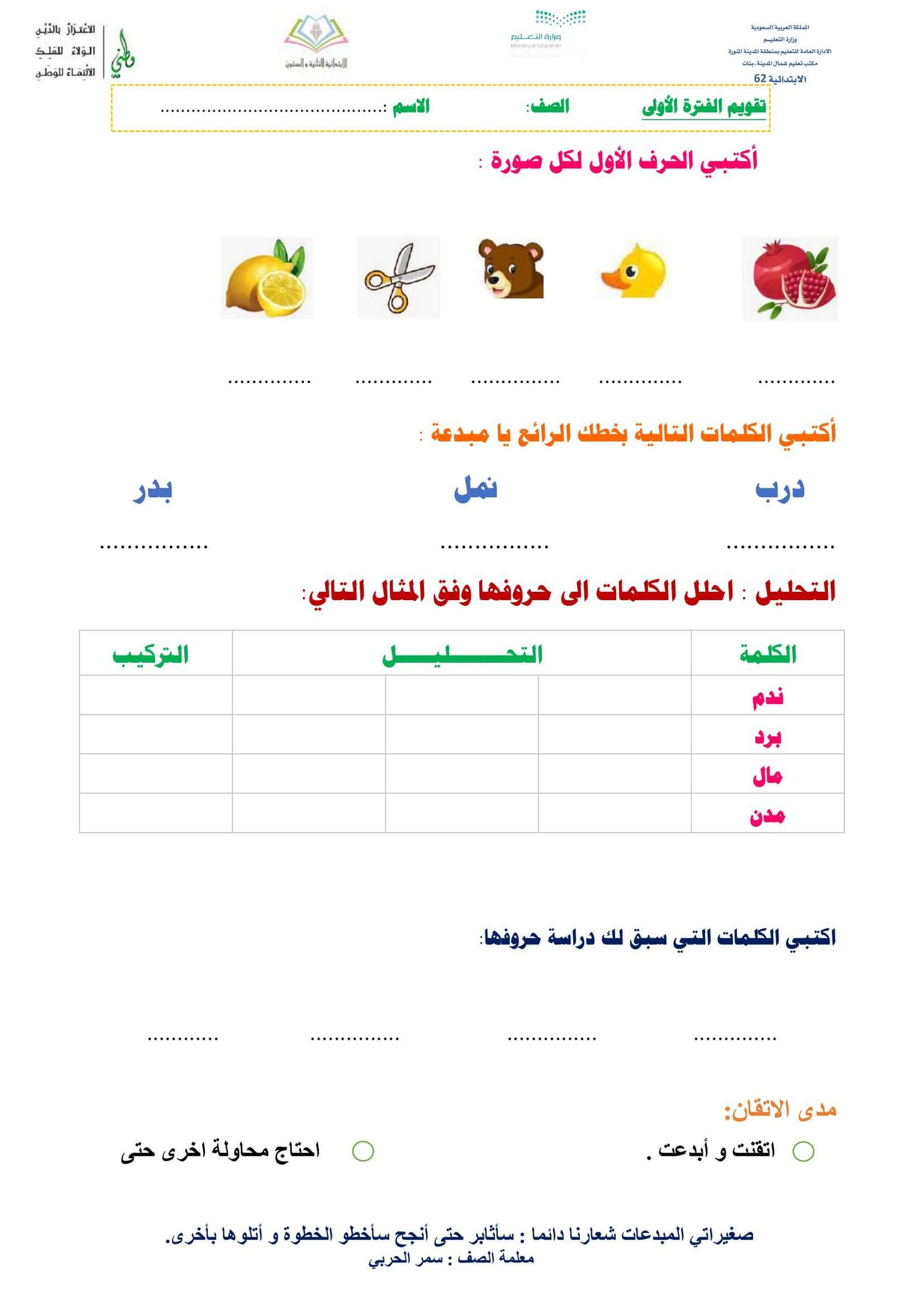 أوراق عمل اللغة العربية للصف الأول الابتدائيpdf تحميل مجاني