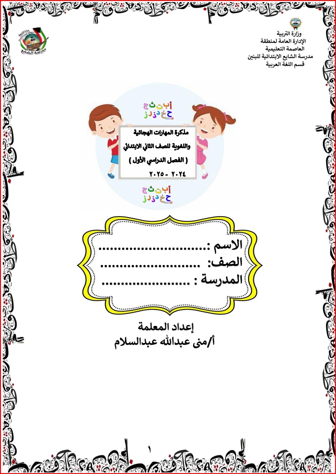 لغتنا الجميلة: رحلة في كنوز الضاد مذكرة المهارات اللغوية والهجائية للصف الثاني الابتدائي. لغتنا الجميلة: رحلة في كنوز الضاد ملزمة…