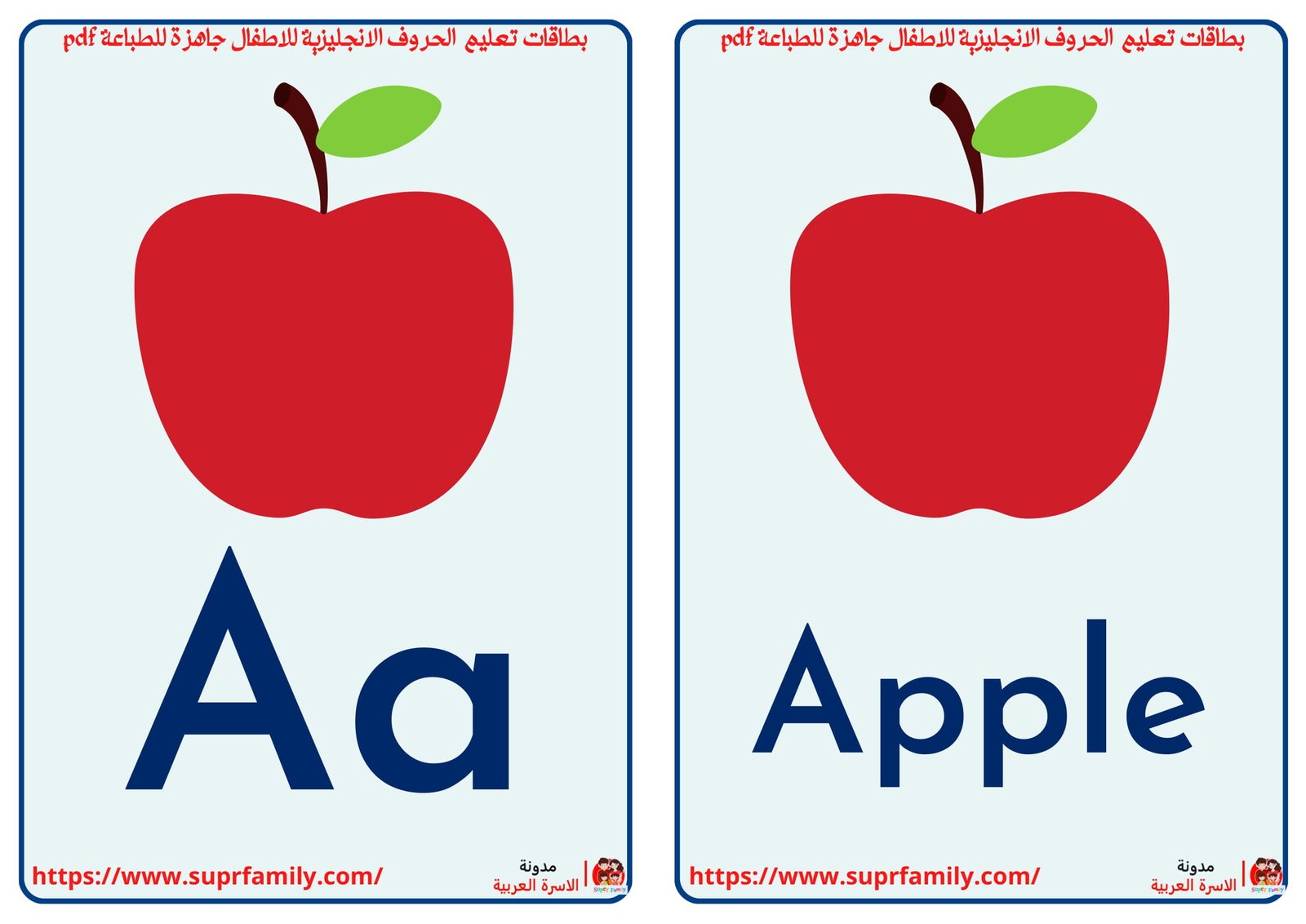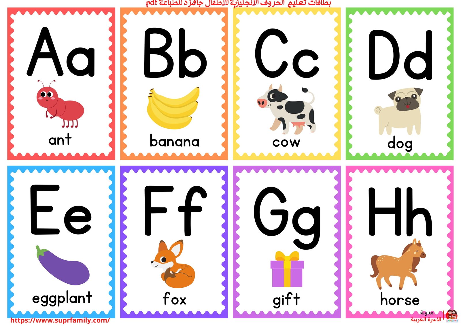 بطاقات الحروف الإنجليزية للأطفال جاهزة للطباعة مع الصور – تحميل مجاني pdf