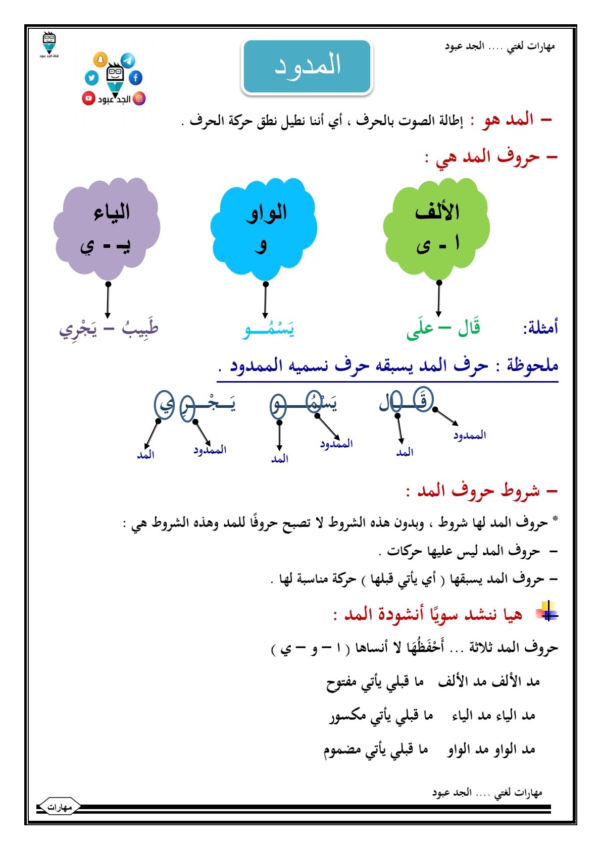 دليل شامل لتعلم مهارة المدود للأطفال – المد بالألف والواو والياء أمثلة وتمارين PDF تحميل مباشر مجاني