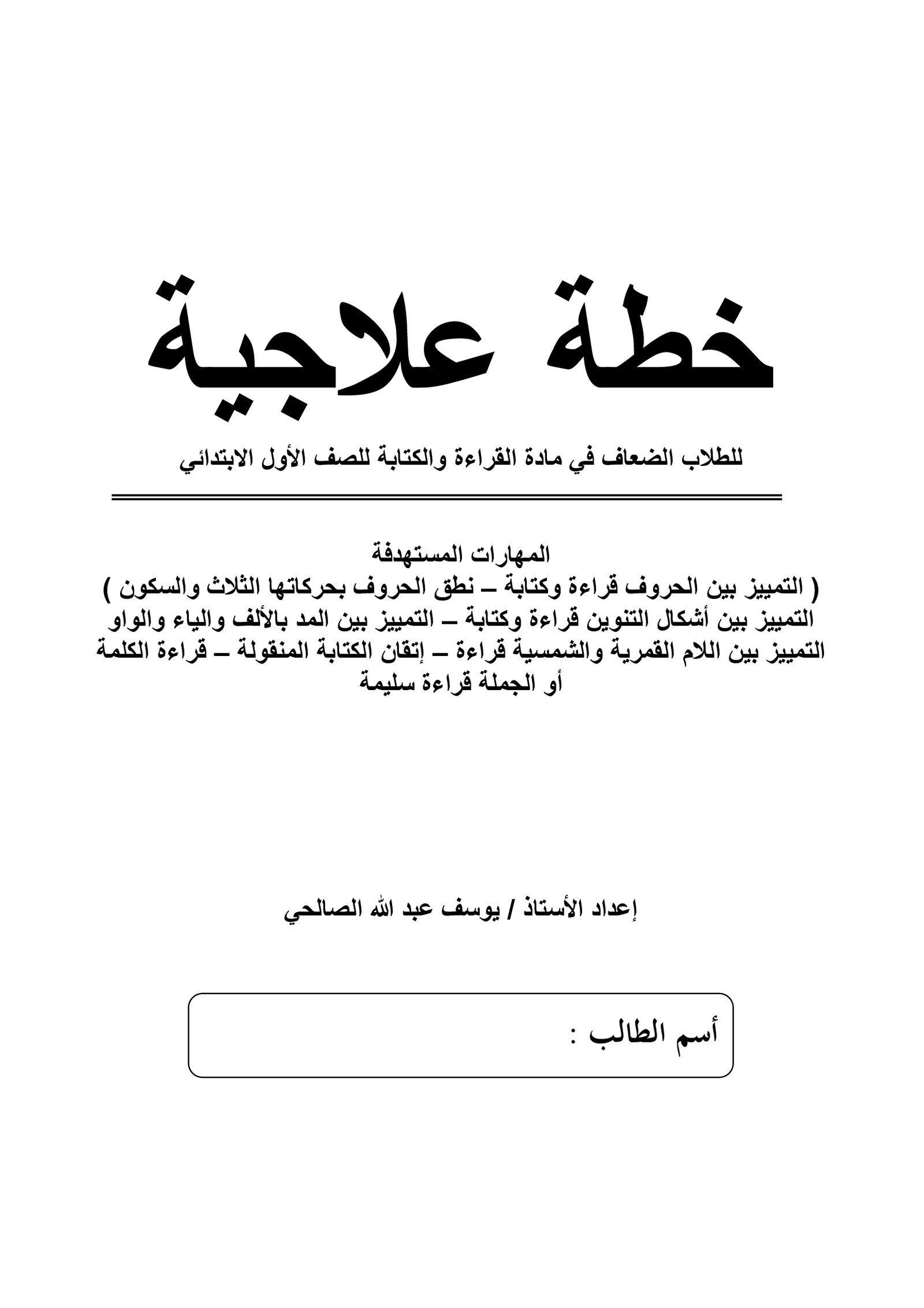 خطة علاجية : لتنمية مهارات القراءة والكتابة pdf