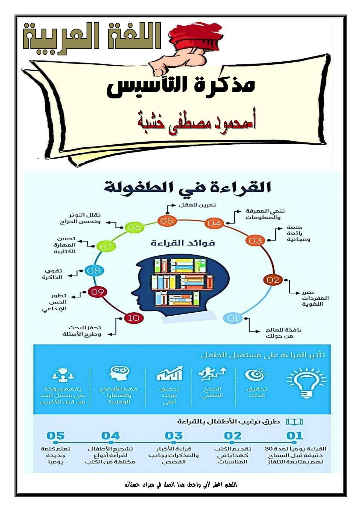 مذكرة التاسيس فى اللغة العربية للحضانة والصفوف الاولى الجديدة pdf رابط مباشر