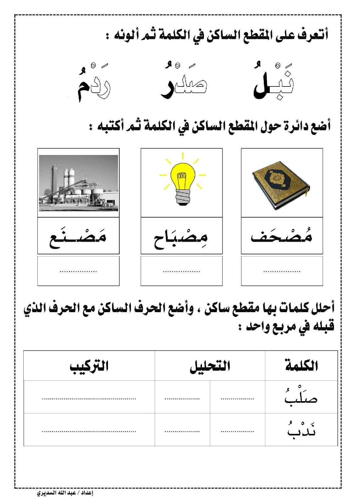 تدريبات تحليل الكلمات بالمقطع الساكن للأطفال PDF جاهزة للطباعة