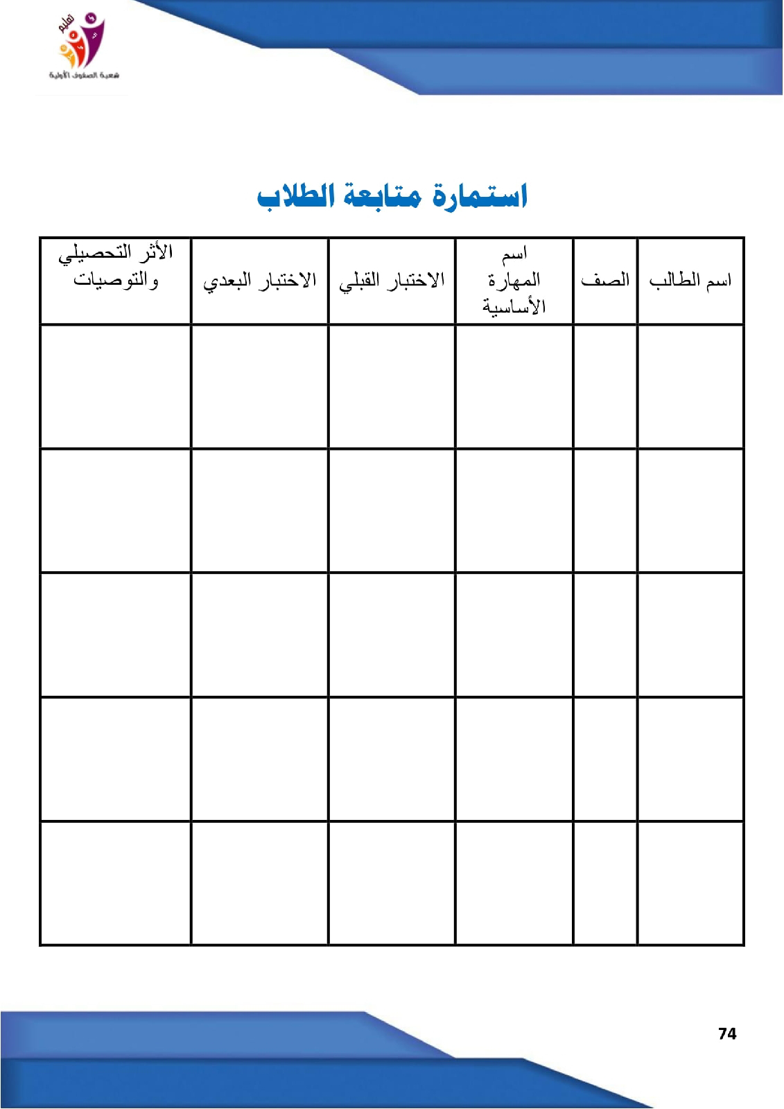 - خطة علاجية للطالب الذي لديه مهارات لم يتقنها.